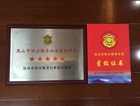 近日,在剛剛結束的昆山市保安服務企業(yè)星級評定中,昆山市保安服務有限公司以總分98.5的優(yōu)異成績榮獲了“2016年度五星級企業(yè)”榮譽稱號。