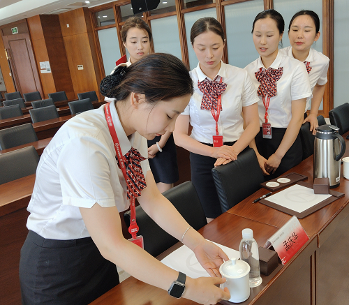 培訓(xùn)按照《會議服務(wù)操作技術(shù)規(guī)范》,分別對會議服務(wù)崗位所需精神狀態(tài)、綜合素養(yǎng)、形象管理以及會議物品擺放標(biāo)準(zhǔn)、服務(wù)注意事項等內(nèi)容進(jìn)行培訓(xùn)講解。會務(wù)主管現(xiàn)場模擬示范了物品擺放位置,并就會前操作流程標(biāo)準(zhǔn),會中茶水服務(wù)、溝通技巧、應(yīng)急處置方法,會后會議用品高效有序撤場三個方面內(nèi)容作詳細(xì)輔導(dǎo)。培訓(xùn)強(qiáng)調(diào),會務(wù)工作人員要以精益求精、一絲不茍的工作態(tài)度確保會議每個環(huán)節(jié)、每項步驟順利進(jìn)行,努力在會務(wù)服務(wù)水平和工作質(zhì)效上實現(xiàn)新突破,全力推進(jìn)會務(wù)保障工作上臺階、上水平。