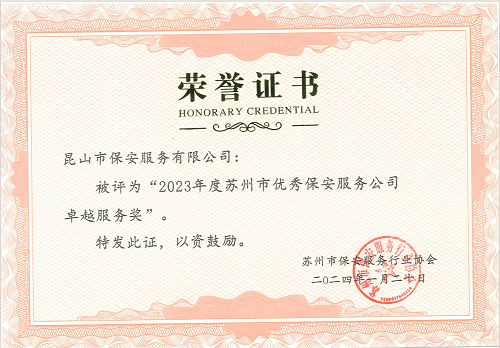安保公司下屬保安公司榮獲蘇州市保安服務(wù)公...