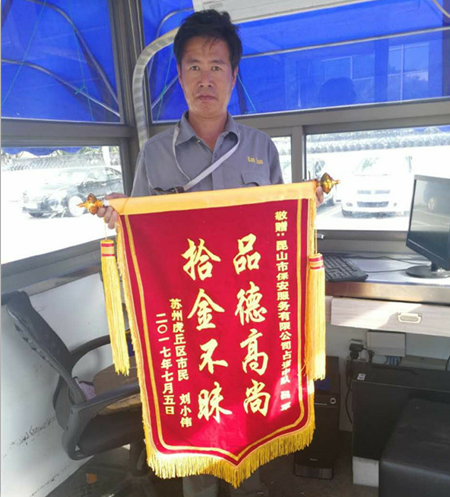 保安公司停車收費(fèi)員拾金不昧獲錦旗