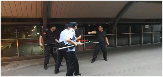 為進一步提高保安公司駐軌道交通站隊員防暴應急意識,提升隊員應對突發(fā)事件處理能力與軌道公司協(xié)同處置能力,2019年7月8日晚上10點,保安公司6名隊員在花橋光明站參加了“紅藍軍”對抗演練活動。