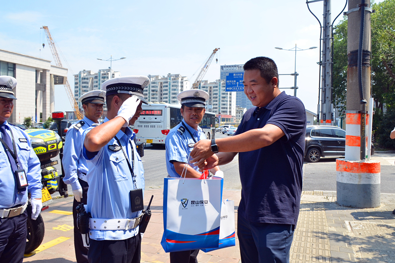 王鯨副總裁一行來到前進路青陽路交叉口,慰問一線執(zhí)勤安保人員,向他們送去了防暑降溫用品,對全體道路交通指揮員無畏高溫,持續(xù)堅守在高溫天氣下表示感謝。并強調維護交通秩序,工作壓力大、責任重,全體隊員一定要做好相關防暑降溫工作,科學調整作息時間與執(zhí)勤時間,助力交通部門維護城市道路交通秩序。隨后,王鯨副總裁一行還前往亭林公園慰問亭林公園安保與保潔隊伍,對大家在工作中不畏高溫,盡職盡責給予高度評價,并叮囑大家在日常工作中加強自身防護,打造高質量安保、保潔隊伍,守護好亭林園這座城市綠色名片。